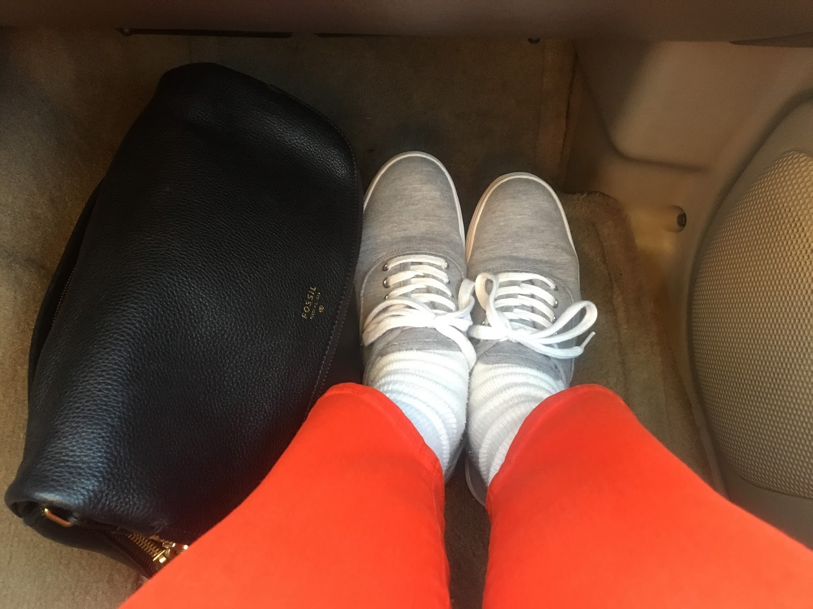 I wore my bright orange jeans and inexpensive gray tennis shoes from Target for the long two day drive home.